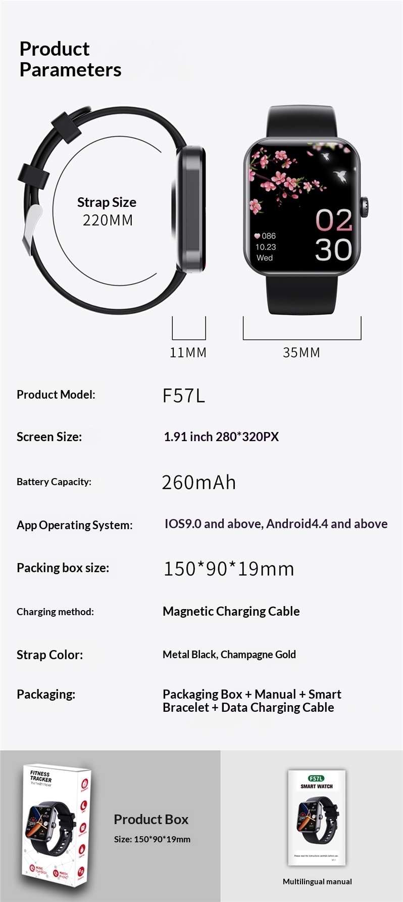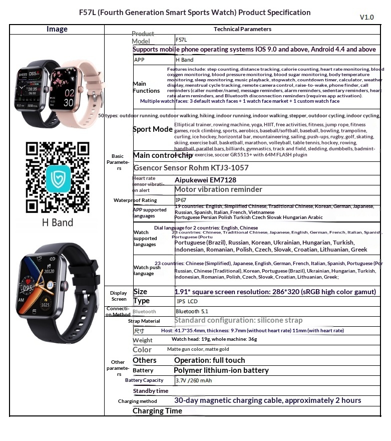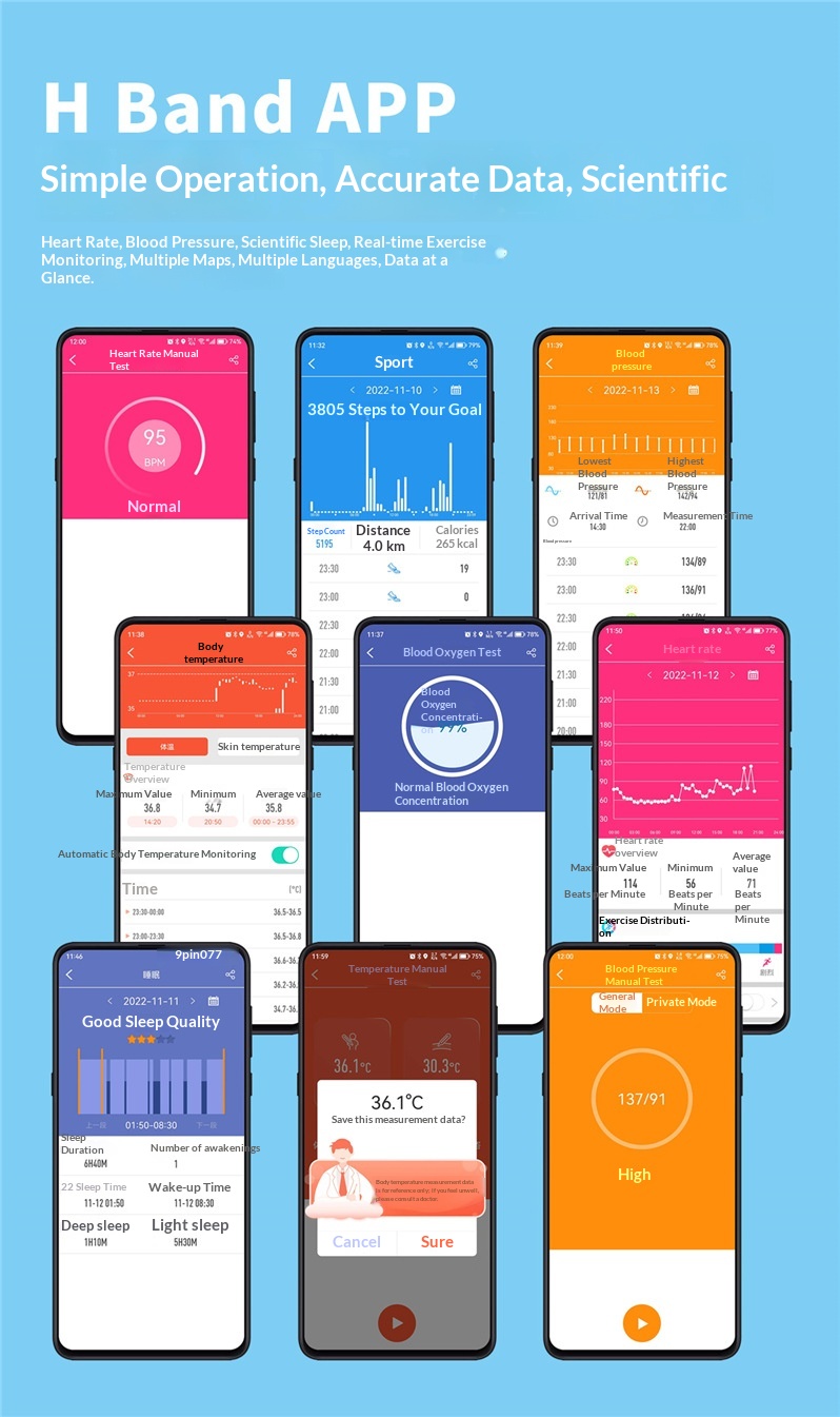 Features: Pedometer, Heart Rate Monitoring, Smart Notifications, Remote Selfie Control